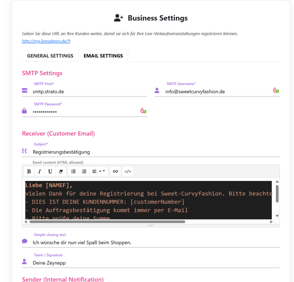 Für die Registrierung der Endkunden haben wir jetzt einen eigenen SMTP-Zugang pro Seller eingebaut. Damit werden alle E-Mails direkt über die jeweilige Domain des Sellers versendet – professionell, persönlich und markenkonform.